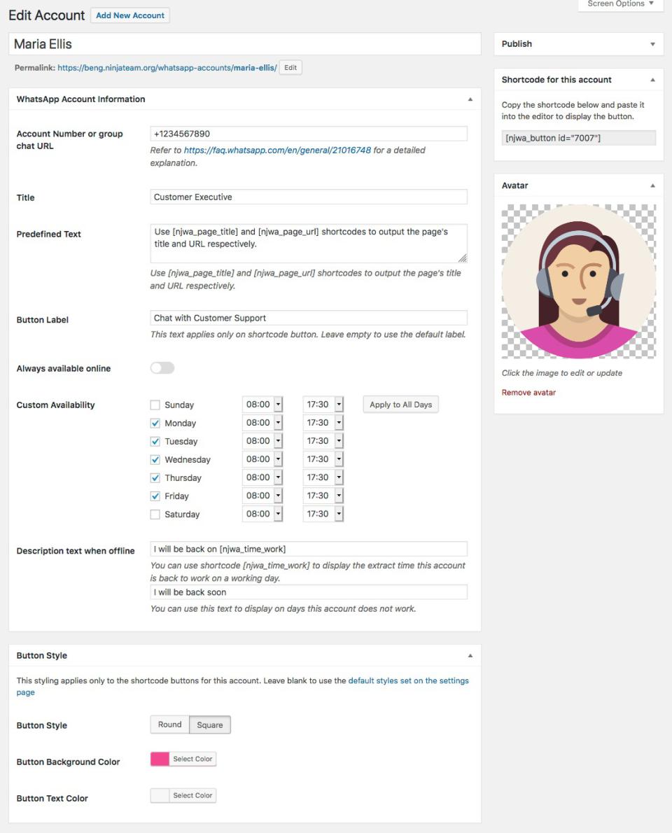 افزونه چت واتساپ به شما امکان می دهد ظاهر و عملکرد دکمه چت و پنجره چت را سفارشی کنید. شما می توانید: