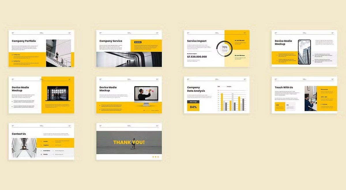 قالب پاورپوینت شرکتی مدرن زرد و سفید
