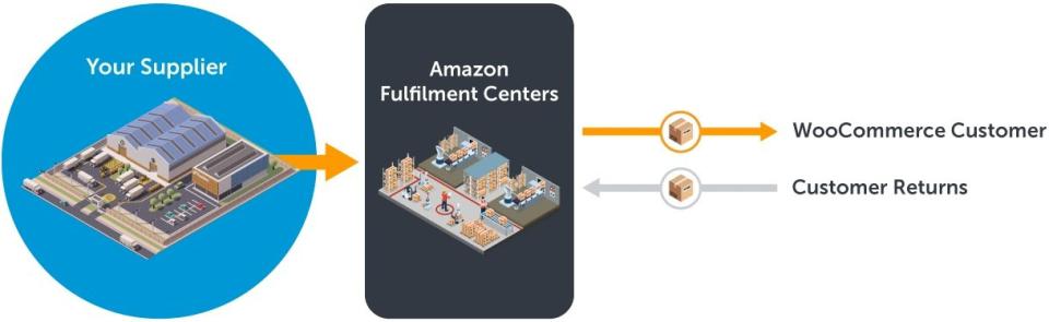 آمازون فولفیلمنت (FBA) یک سرویس انبارداری و توزیع متعلق به آمازون است. با استفاده از FBA، میتوانید محصولات خود را به مراکز توزیع عظیم آمازون در سراسر جهان ارسال کنید. سپس، هنگامی که مشتری سفارشی را از فروشگاه ووکامرس شما ثبت میکند، آمازون بهطور خودکار محصول را چیده، بستهبندی کرده و برای مشتری شما ارسال میکند.