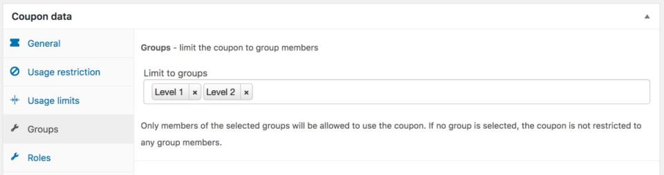 - محدود کردن کوپن ها به اعضای گروه: Group Coupons به شما این امکان را می دهد که استفاده از کوپن های تخفیف را فقط برای اعضای گروه های خاص محدود کنید. این ویژگی برای مواردی مانند ارائه تخفیف های ویژه به مشتریان وفادار یا اعضای برنامه عضویت شما عالی است.