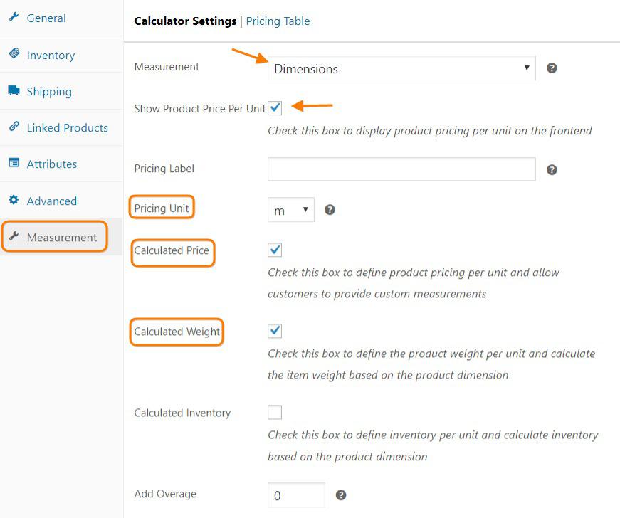 قابلیتهای کلیدی افزونهی WooCommerce Measurement Price Calculator