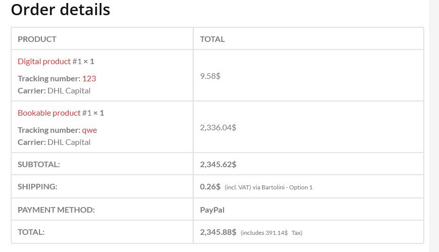 - نمایش وضعیت سفارش در پنل کاربری: افزونهی ووکامرس Shipping Tracking، وضعیت ارسال هر سفارش را در پنل کاربری مشتریان نیز نمایش میدهد. به این ترتیب، مشتریان بدون نیاز به برقراری تماس و یا ارسال پیام، میتوانند از جزئیات مربوط به ارسال سفارش خود مطلع شوند.