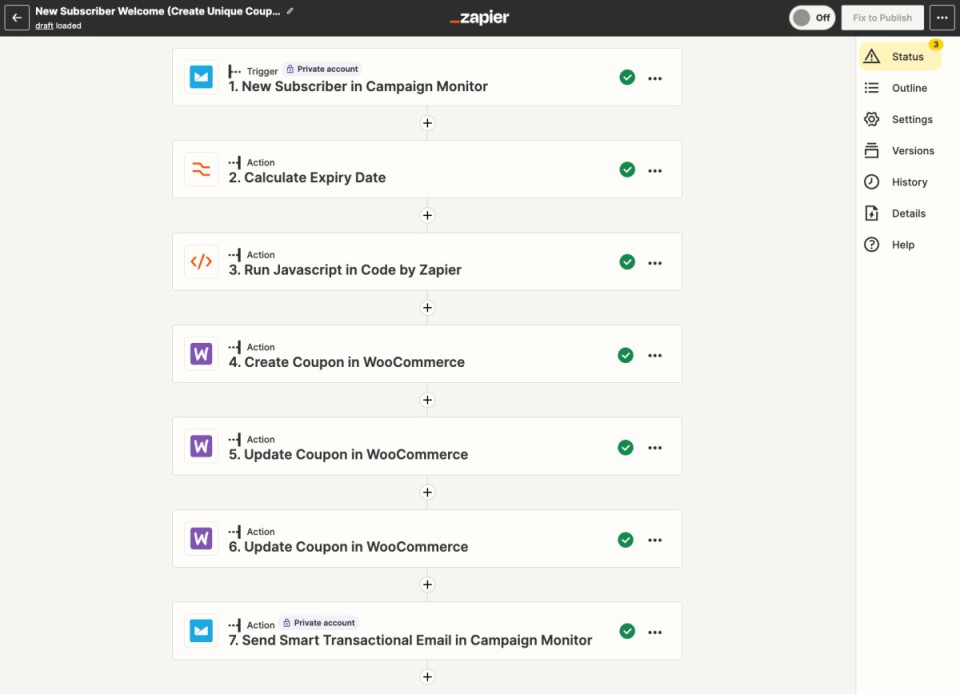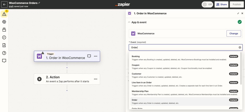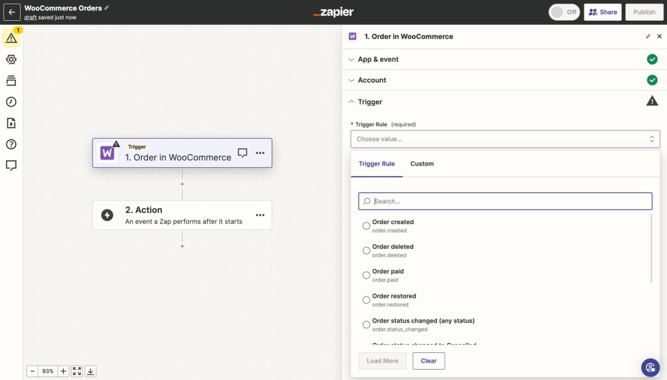 - ایجاد یک زپ (Zap): یک Zap یک جریان کاری خودکار است که وظایف خاصی را انجام می دهد. Zapier طیف گسترده ای از Zaps از پیش ساخته شده را برای ووکامرس ارائه می دهد، یا می توانید Zap سفارشی خود را ایجاد کنید.