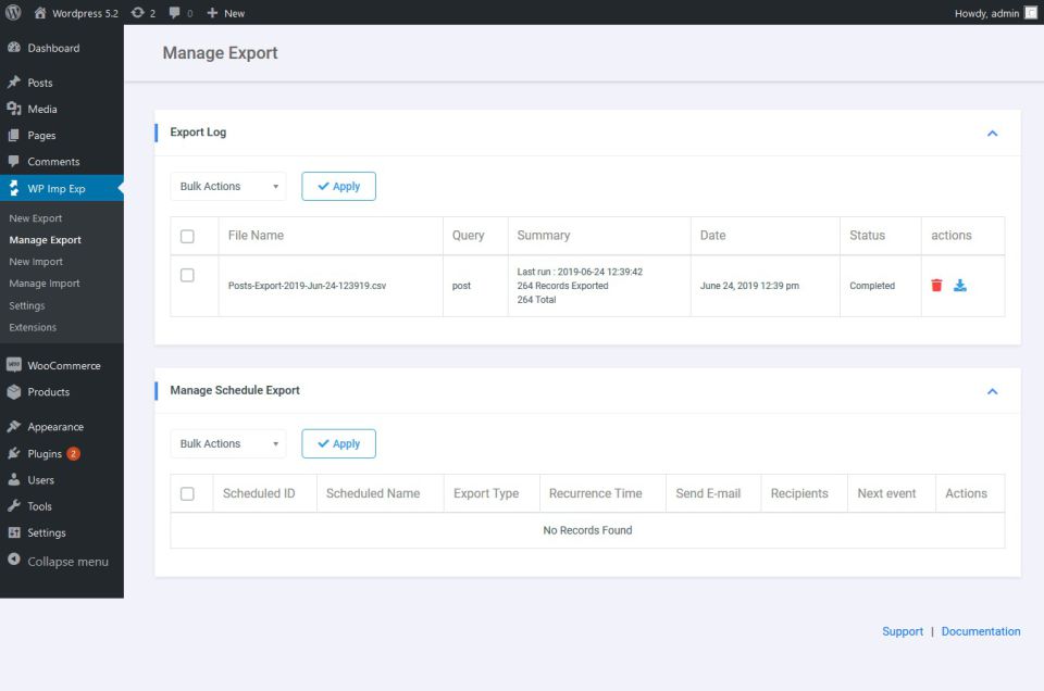 افزونه WP Import Export انتقال اطلاعات با درون ریزی و برون ریزی وردپرس 3.9.27
