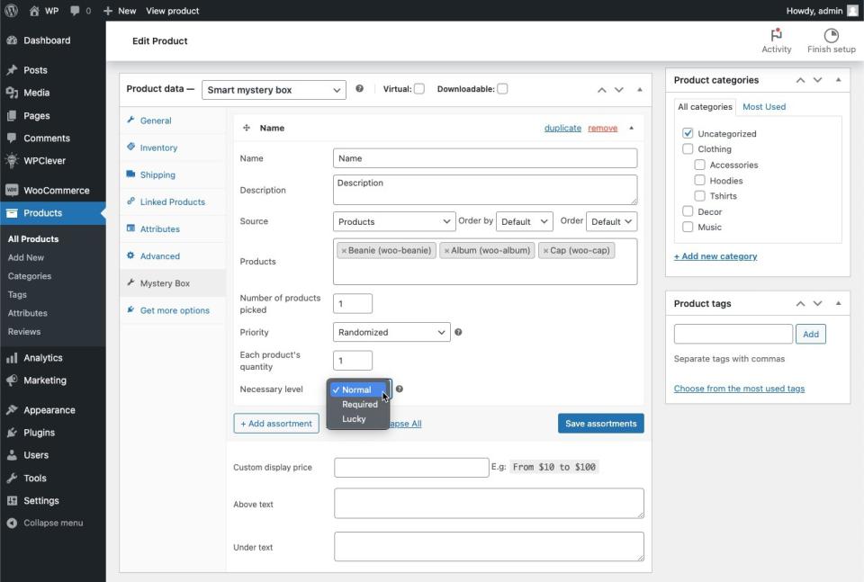 - قابل تنظیم برای هر نوع محصولی: فرقی نمی کند لباس، لوازم الکترونیکی یا محصولات دیجیتال بفروشید، WPC Mystery Box برای هر نوع کالایی قابل استفاده است.