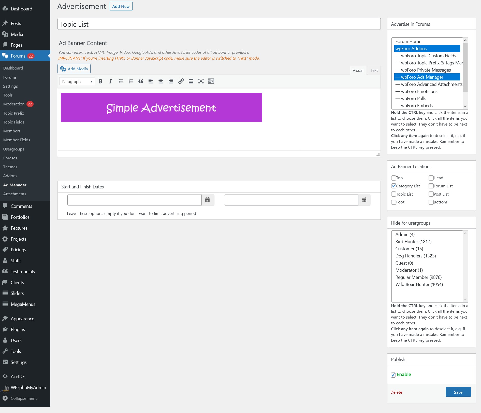 افزونه wpForo Ads Manager مدیریت تبلیغات انجمن ساز وردپرس فورو 3.0.3