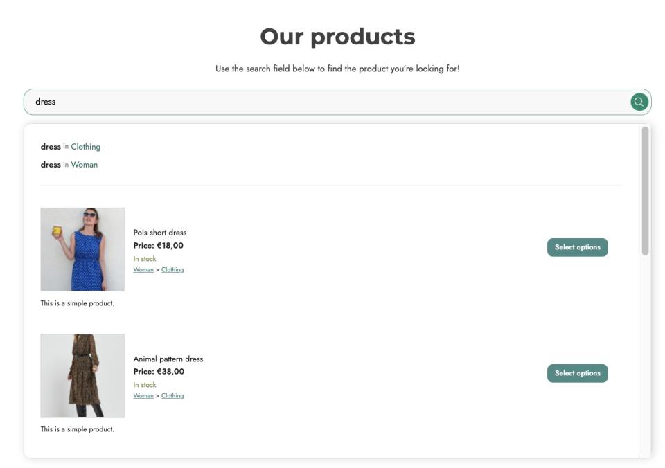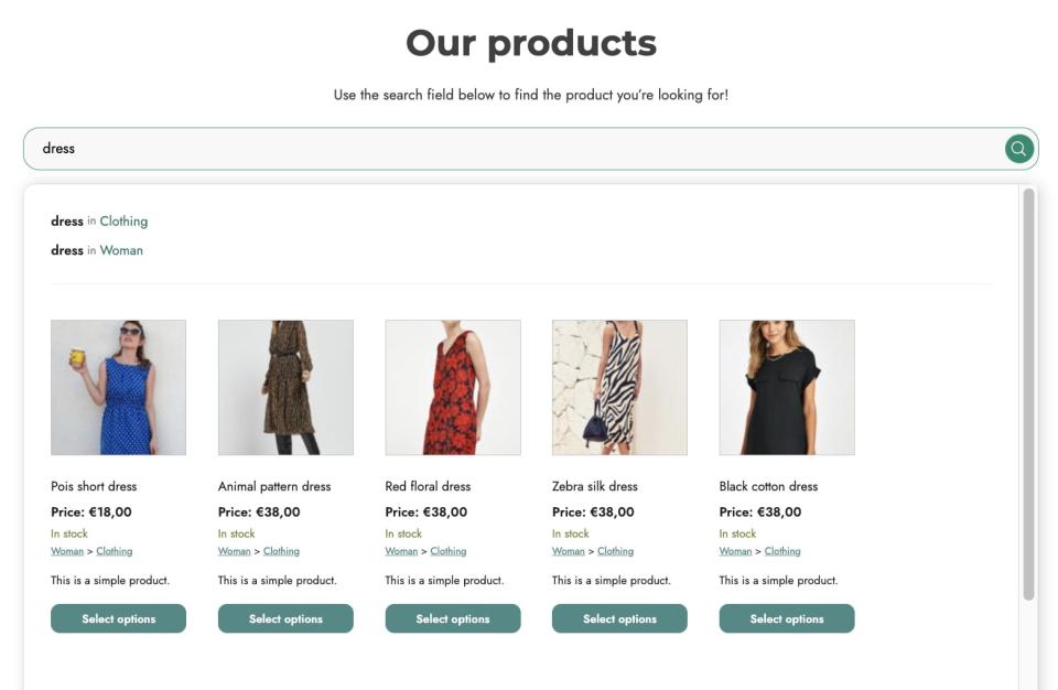 - جستجو در دستهبندیها و برچسبهای خاص: میخواهید مشتریان بتوانند فقط در دستهبندی خاصی مثل «پوشاک» یا با برچسبی مثل «تخفیف خورده» جستجو کنند؟ مشکلی نیست! این افزونه این امکان را هم برایتان فراهم میکند.