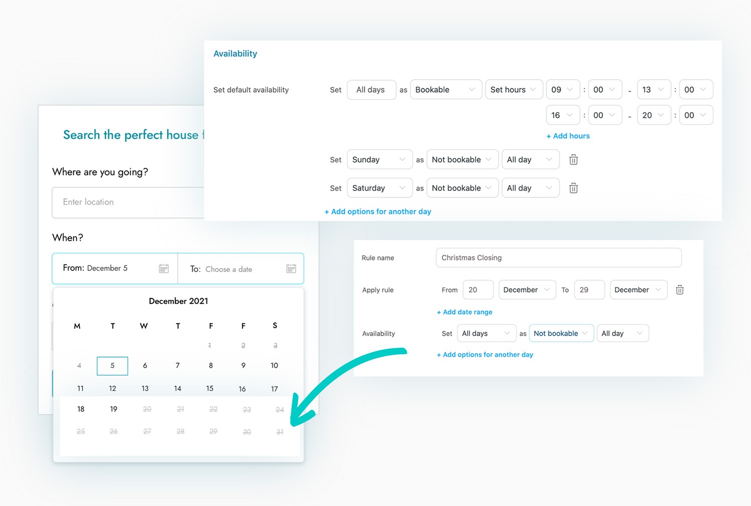ایجاد قوانین رزرو سفارشی، مانند مسدود کردن تاریخ های خاص