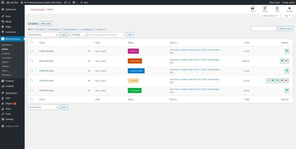 مدیریت آسان سفارشات ووکامرس با YITH WooCommerce Custom Order Status Premium