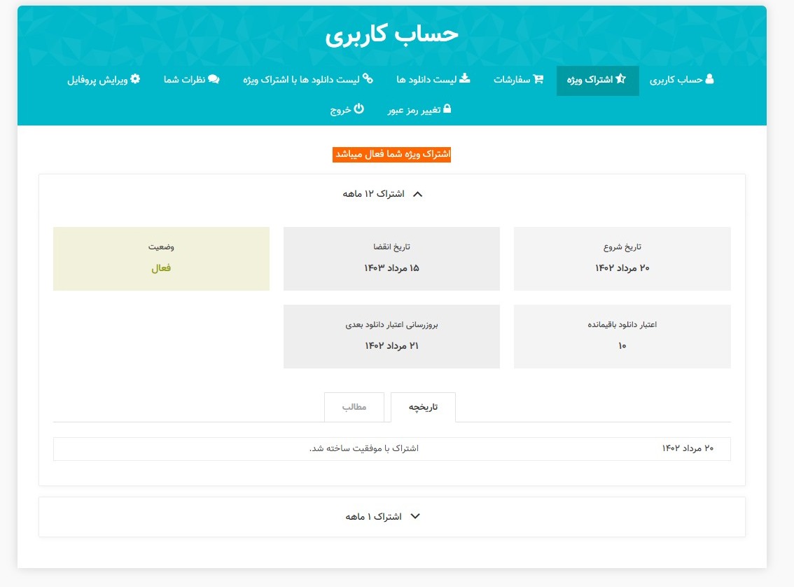 - قابلیت نمایش تاریخچه عضویت های ویژه در حساب کاربری