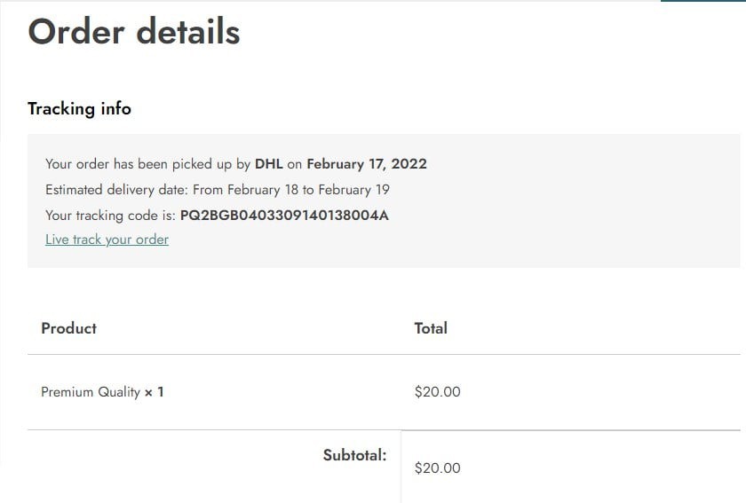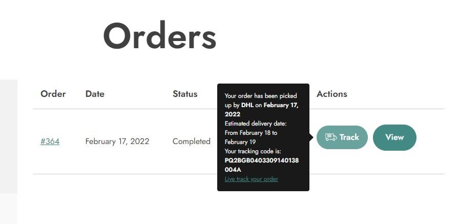 - نمایش اطلاعات ردیابی در حساب کاربری مشتری: مشتریان شما میتوانند با مراجعه به حساب کاربری خود، به راحتی جزئیات مربوط به وضعیت سفارشاتشان را مشاهده کنند. این اطلاعات هم در لیست سفارشات و هم در جزئیات هر سفارش به نمایش در میآید.