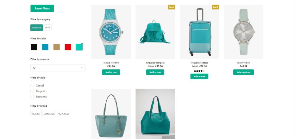 - فیلتر بر اساس دستهبندی، تگ، ویژگی و سایر موارد: کاربران میتوانند محصولات را بر اساس معیارهای مختلف از جمله دستهبندی، تگ، ویژگیهای محصول (مانند رنگ، سایز، برند و غیره) فیلتر کنند.